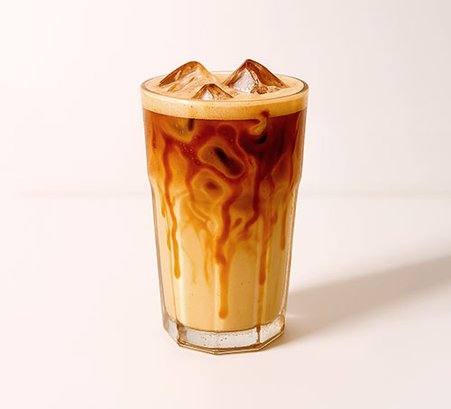 Sweet Refreshment: An iced latte with espresso, milk, caramel syrup, and ice. A sweet and cool delight.