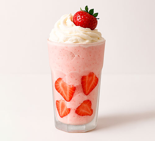 Fruity Delight: A refreshing milkshake with strawberry ice cream, fresh strawberries, and whipped cream. A burst of summer in every sip.