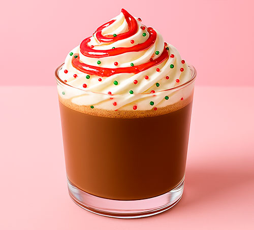 Festive Sweetness: A Nutella hot chocolate with a hint of strawberry syrup, whipped cream, and sprinkles. A holiday treat.